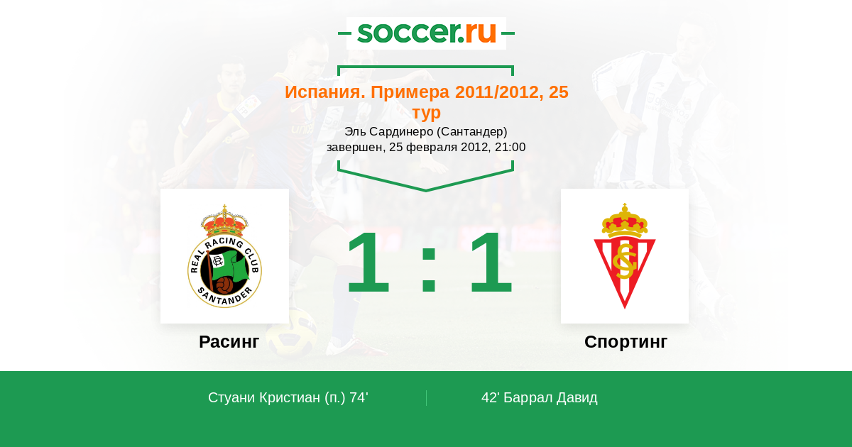 Протокол матча Расинг против Спортинг