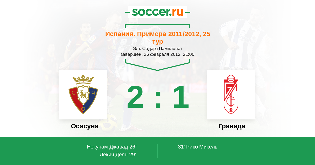 Протокол матча Осасуна против Гранада