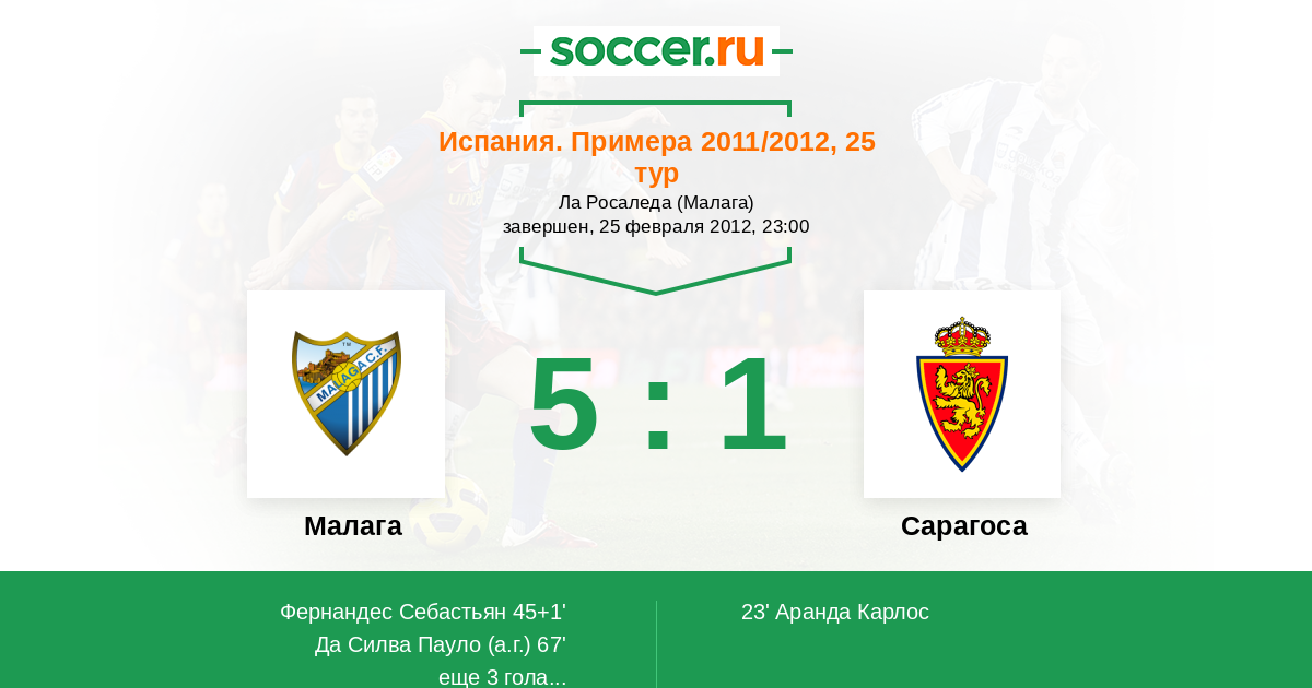 Протокол матча Малага против Сарагоса