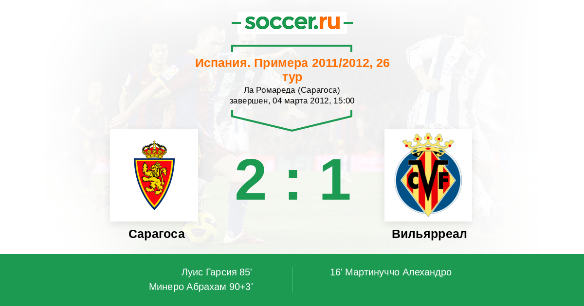 Протокол матча Сарагоса против Вильярреал