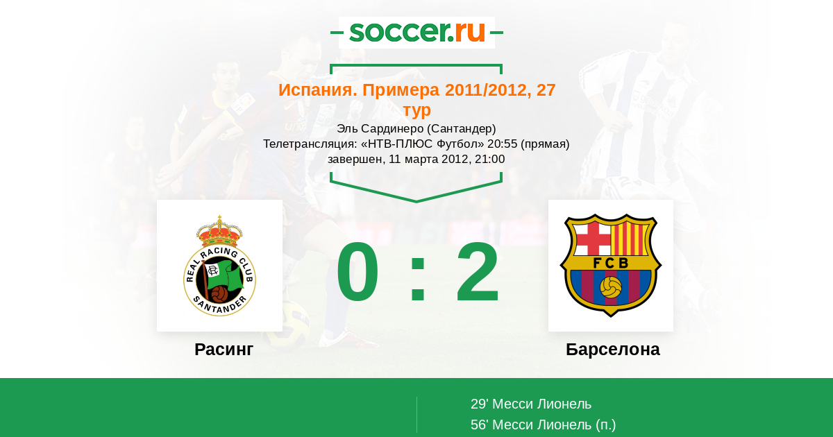 Протокол матча Расинг против Барселона