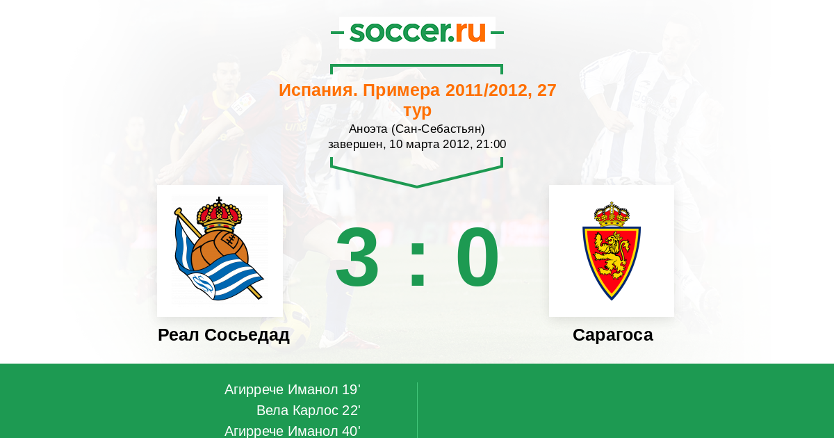Протокол матча Реал Сосьедад против Сарагоса