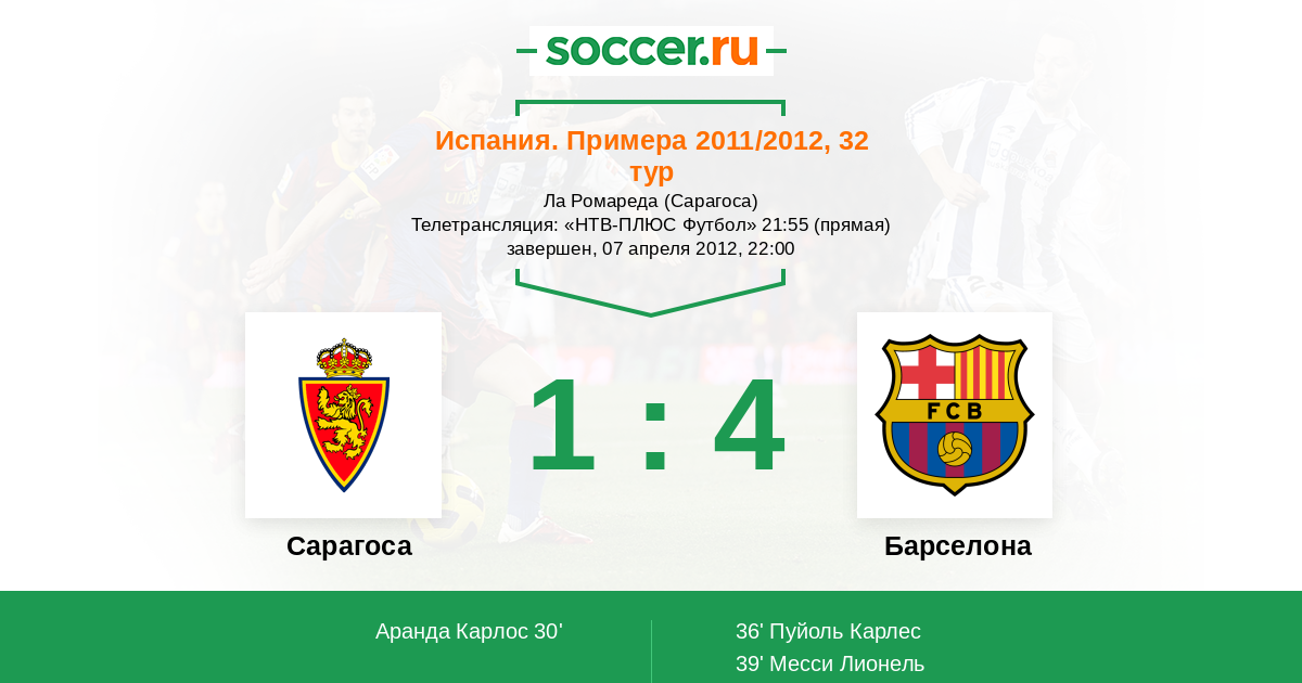 Протокол матча Сарагоса против Барселона