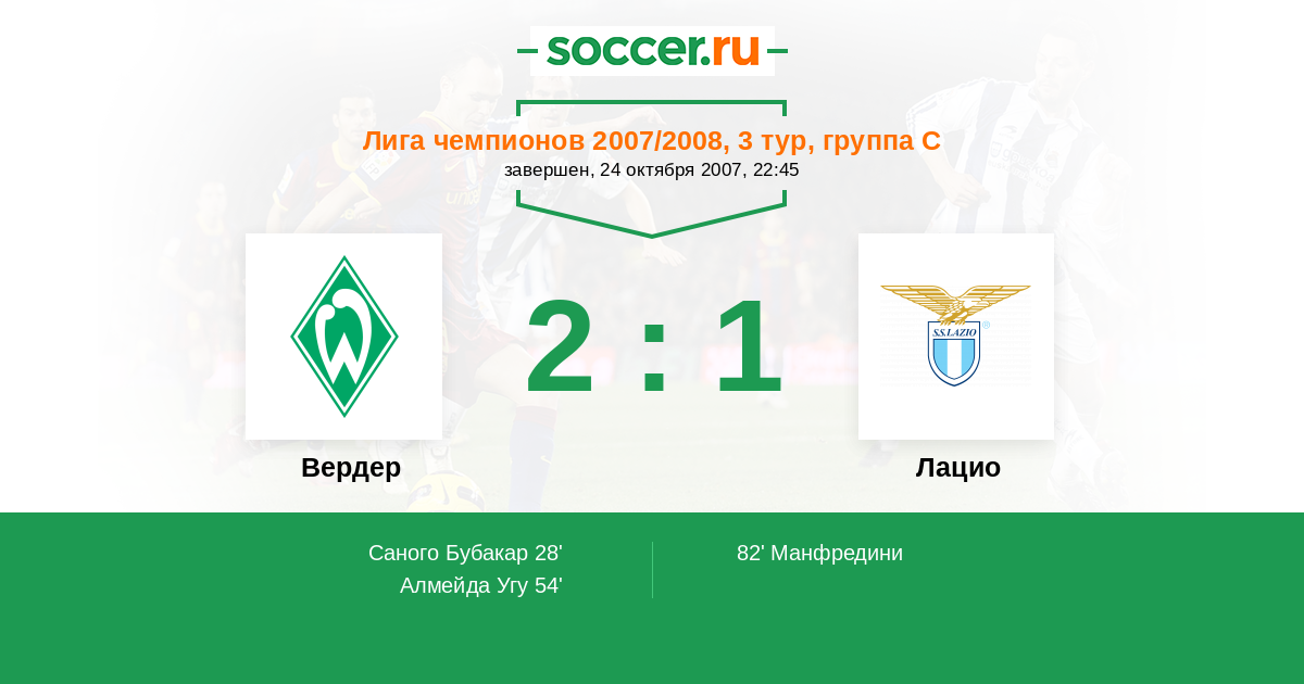 Протокол матча Вердер против Лацио