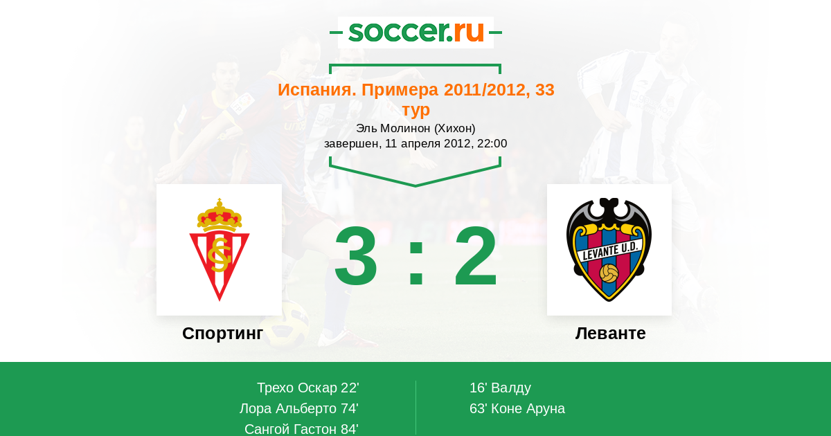 Протокол матча Спортинг против Леванте