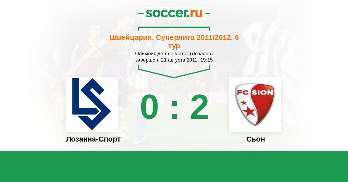 Швейцария. Суперлига 02.10.2011 Сьон Логотип футбольный клуб Сьон 1:0 Логотип футбольный клуб Лозанна-Спорт Лозанна-Спорт