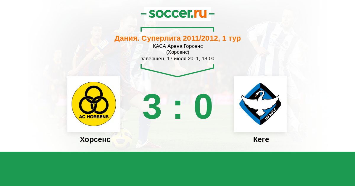 Дания. Суперлига 04.03.2012 Хорсенс Логотип футбольный клуб Хорсенс 2:1 Логотип футбольный клуб Кеге Кеге