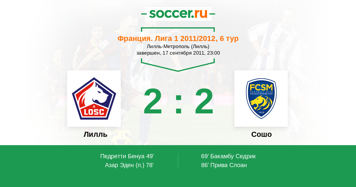 Протокол матча Лилль против Сошо