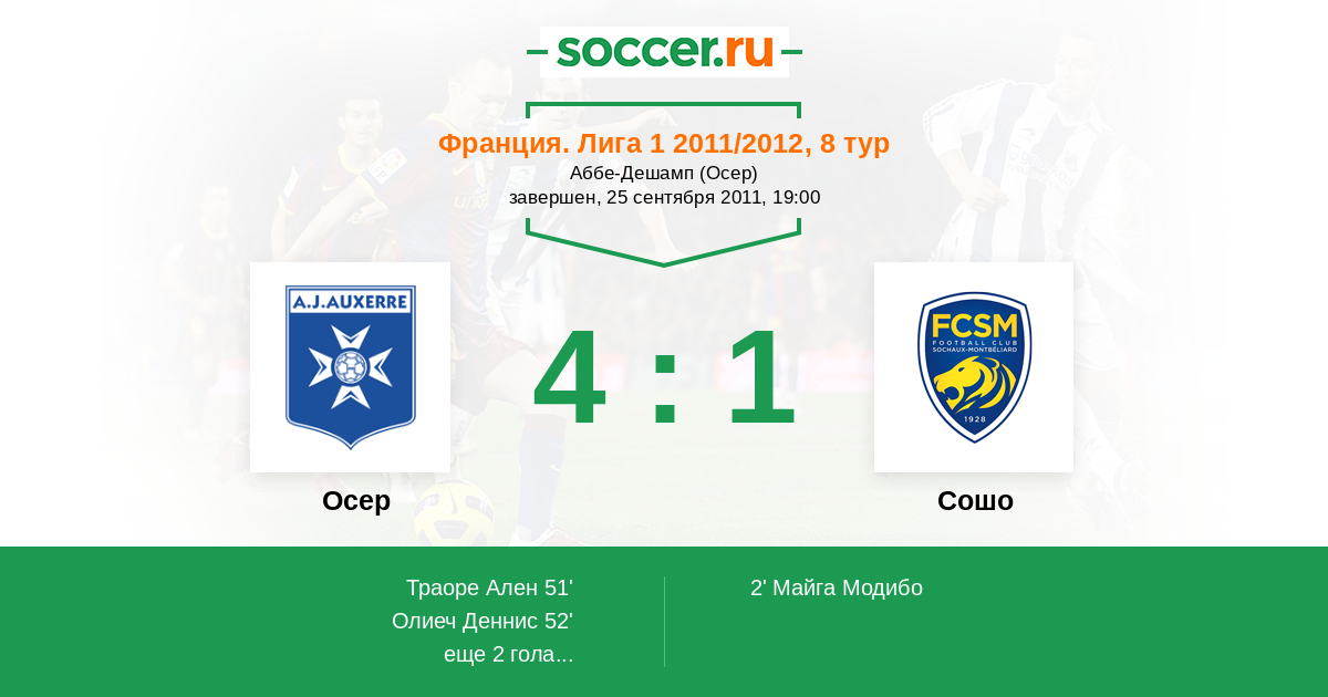 Протокол матча Осер против Сошо
