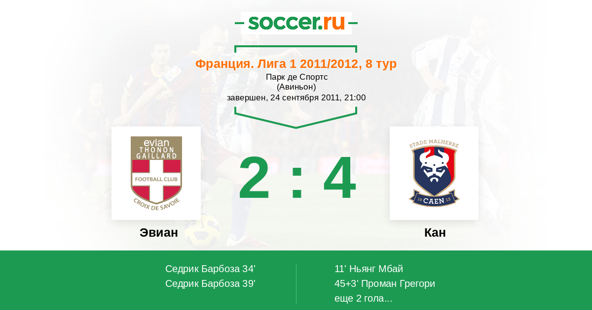 39' (2:1) Седрик Барбоза (14) (Эре Фабрис (28))