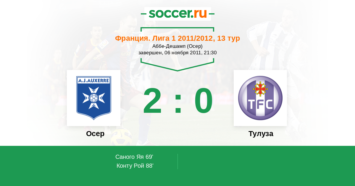 Протокол матча Осер против Тулуза