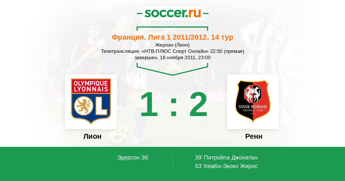 Протокол матча Лион против Ренн