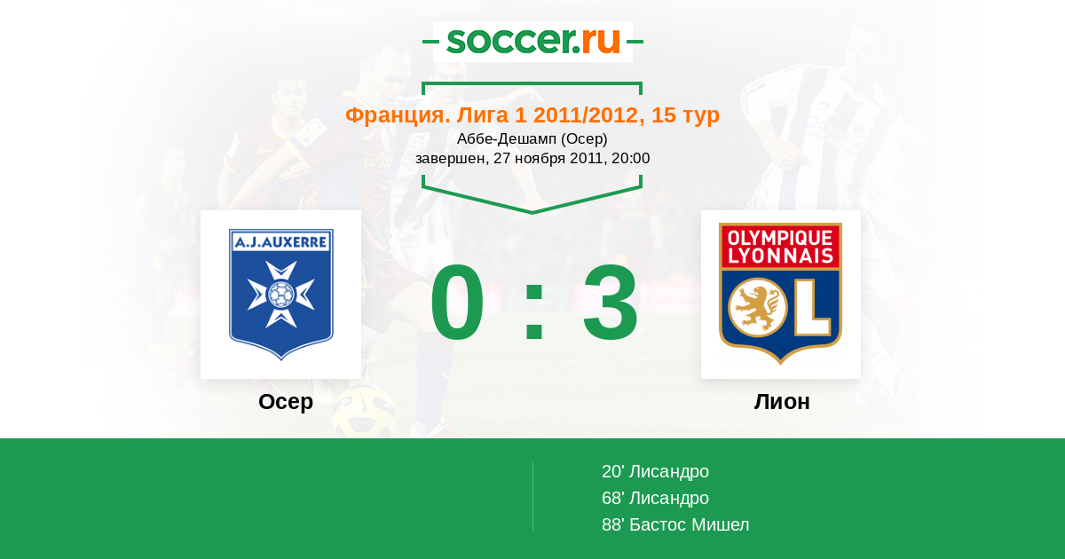 20' (0:1) Лисандро (9) (Бастос Мишел (11))