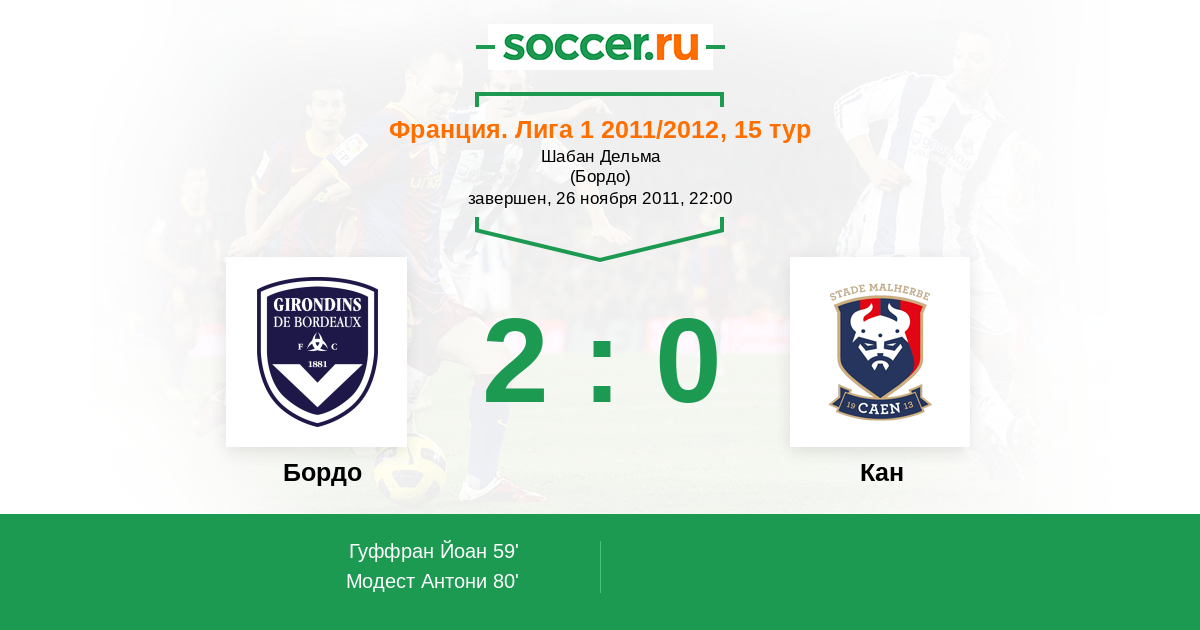 Протокол матча Бордо против Кан