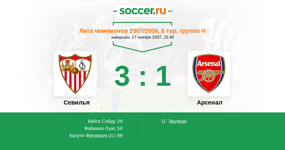 Протокол матча Севилья против Арсенал