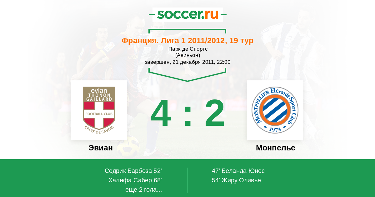 Протокол матча Эвиан против Монпелье