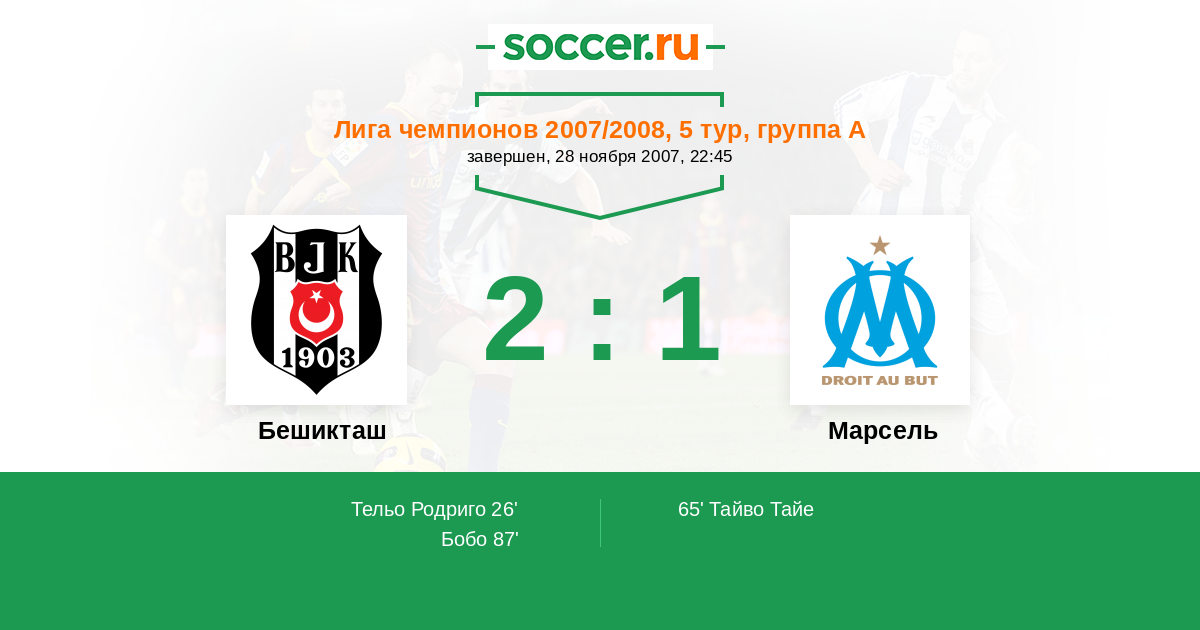 Протокол матча Бешикташ против Марсель