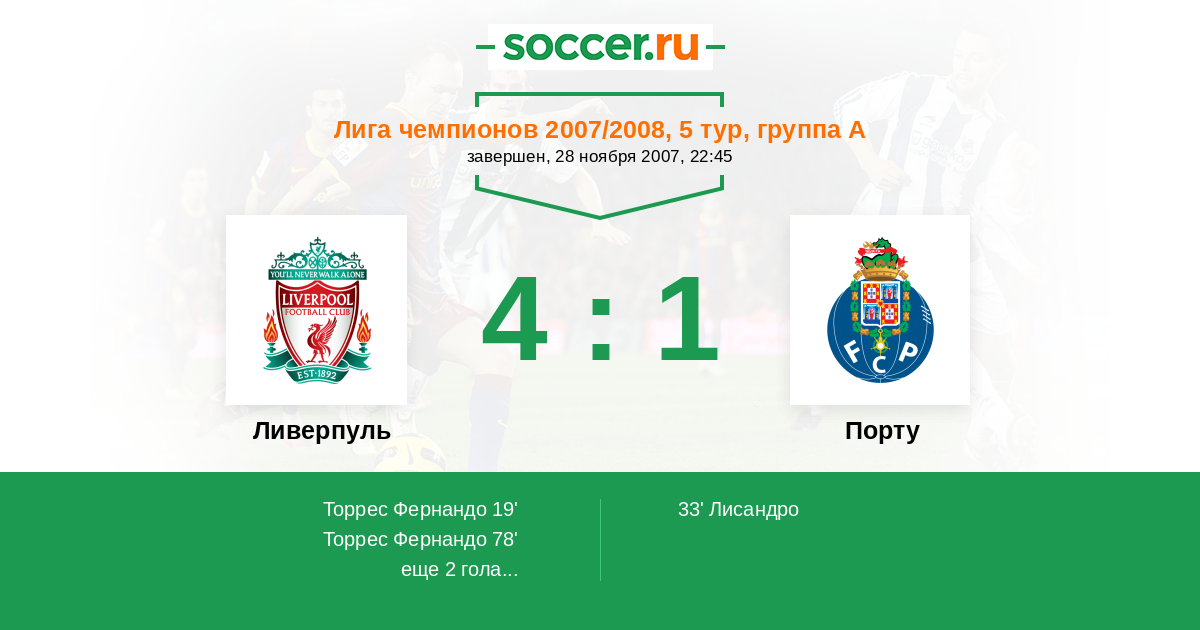 Протокол матча Ливерпуль против Порту