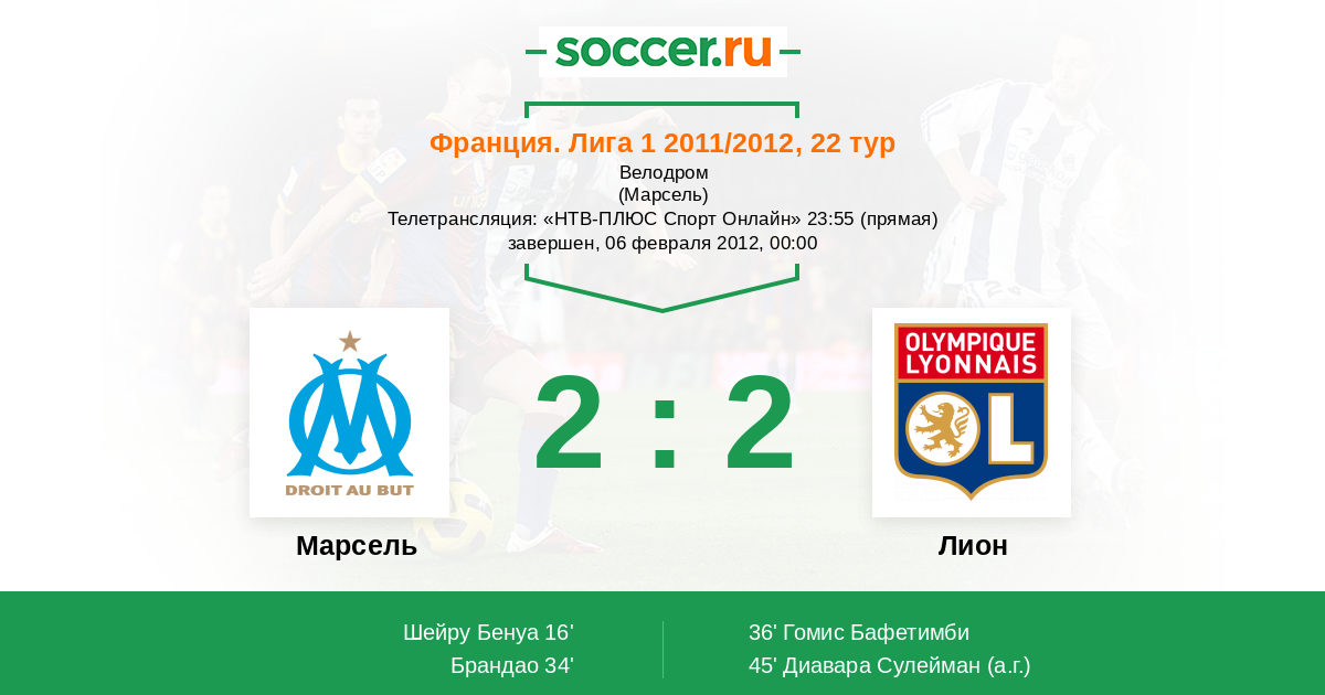 Протокол матча Марсель против Лион