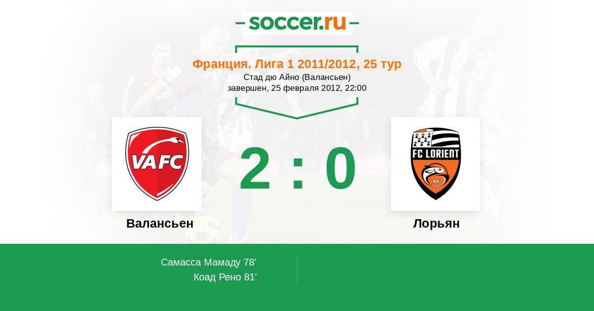 Протокол матча Валансьен против Лорьян