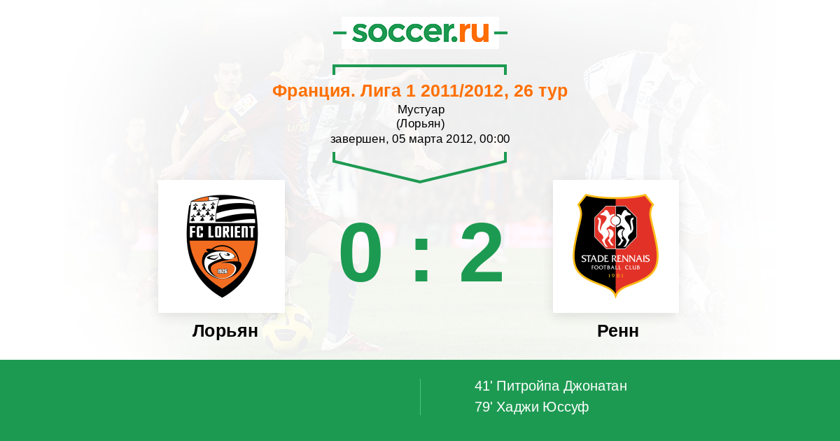 Протокол матча Лорьян против Ренн