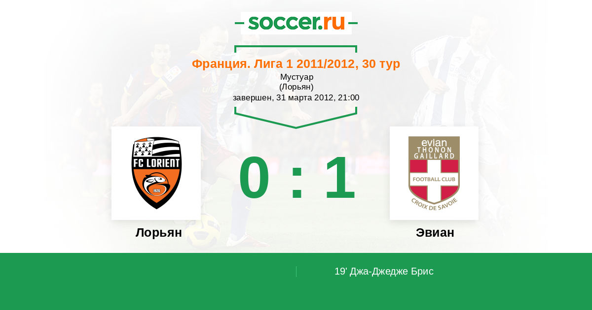 Протокол матча Лорьян против Эвиан
