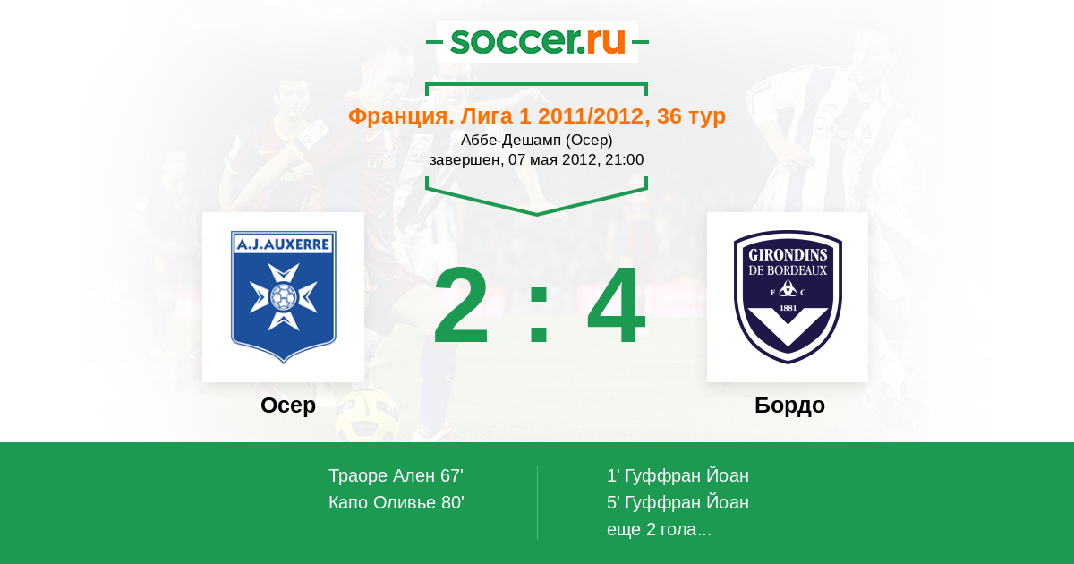 1' (0:1) Гуффран Йоан (9) (Обраньяк Людовик (4))