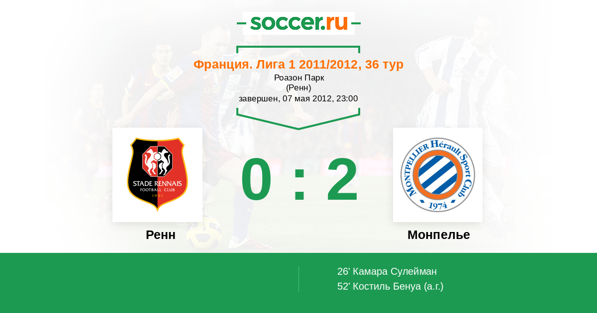 Протокол матча Ренн против Монпелье
