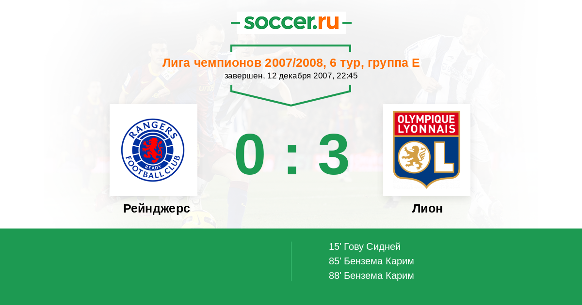 Протокол матча Рейнджерс против Лион