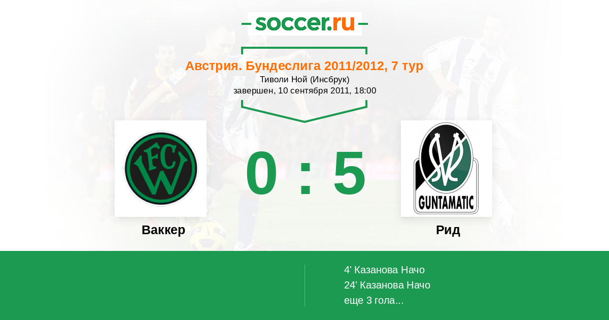 Протокол матча Ваккер против Рид