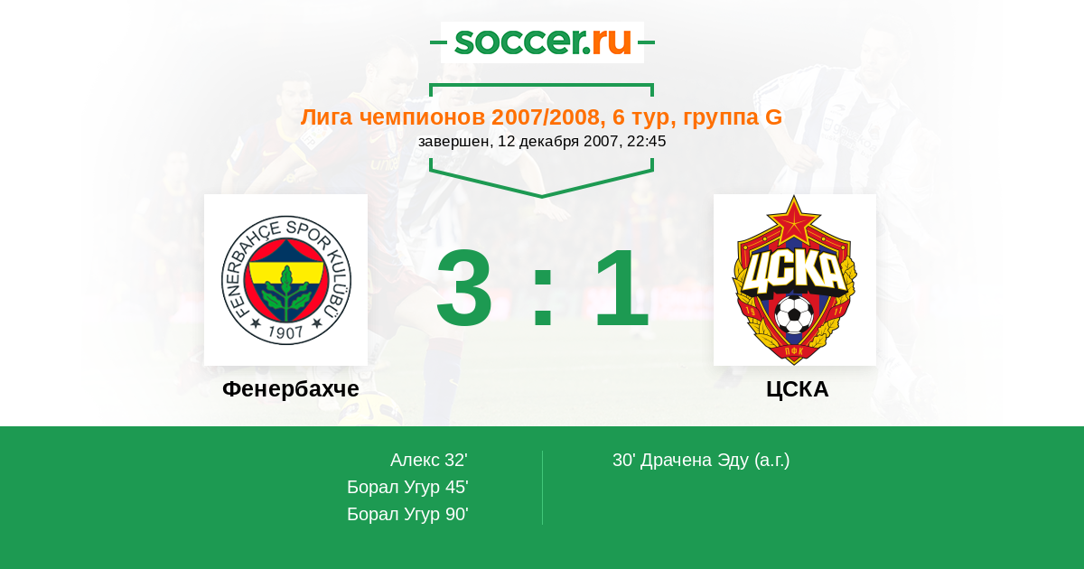 Протокол матча Фенербахче против ЦСКА