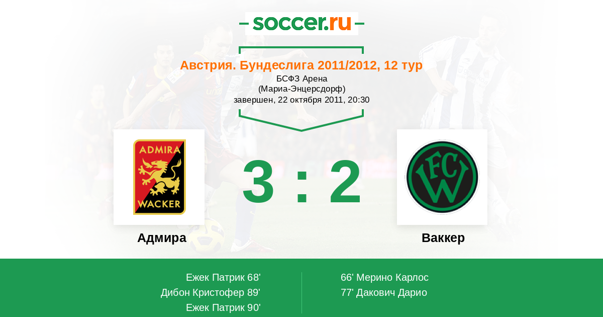 Протокол матча Адмира против Ваккер