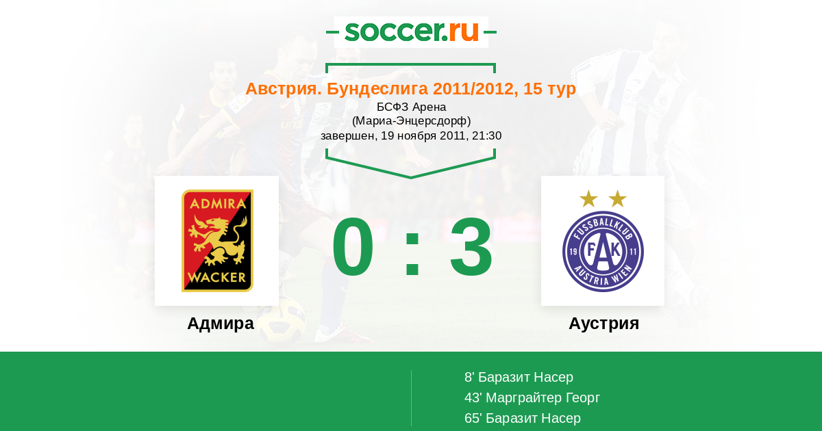 Протокол матча Адмира против Аустрия