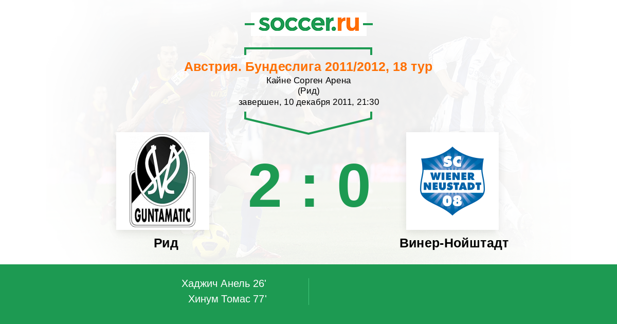 Протокол матча Рид против Винер-Нойштадт