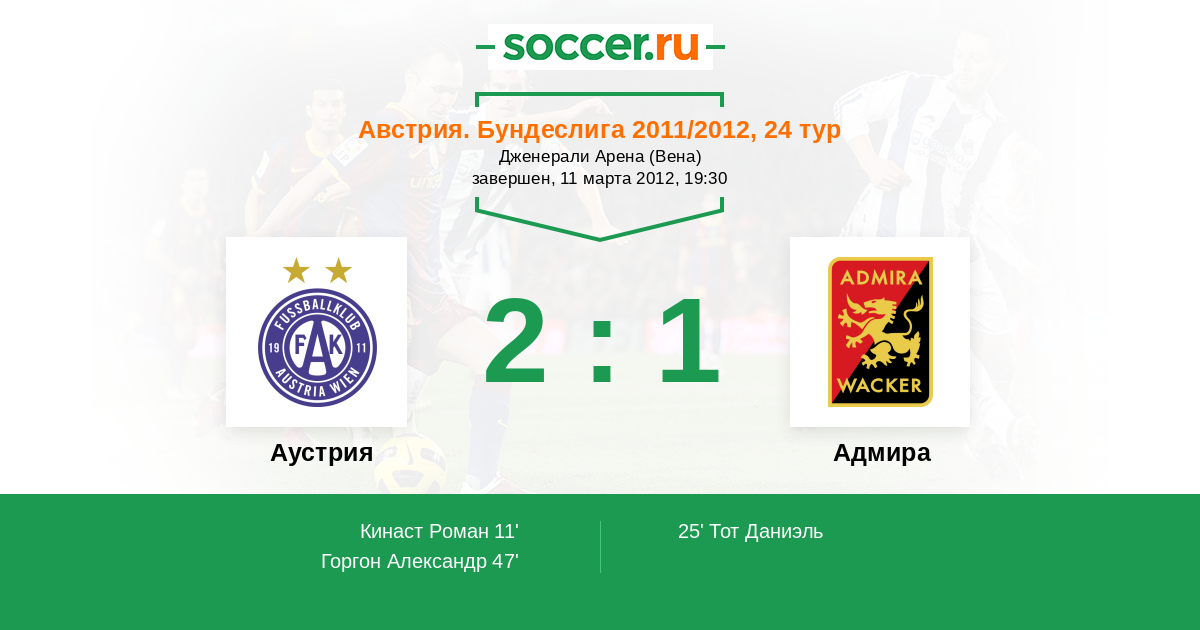 Протокол матча Аустрия против Адмира