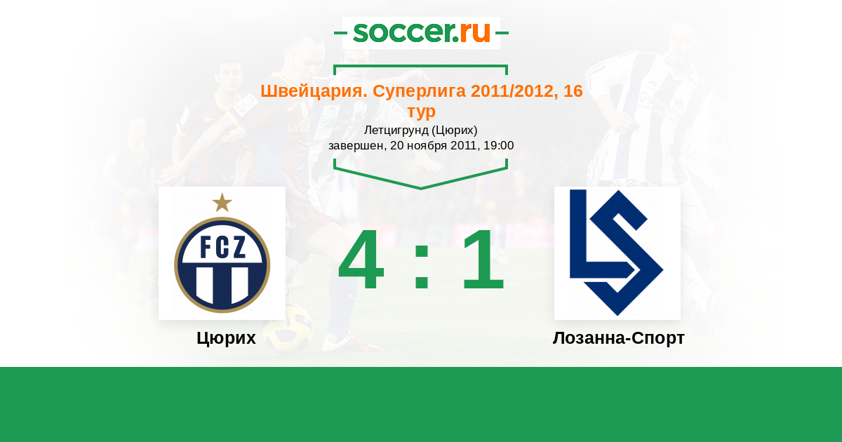 Швейцария. Суперлига 05.08.2012 Цюрих Логотип футбольный клуб Цюрих 4:0 Логотип футбольный клуб Лозанна-Спорт Лозанна-Спорт