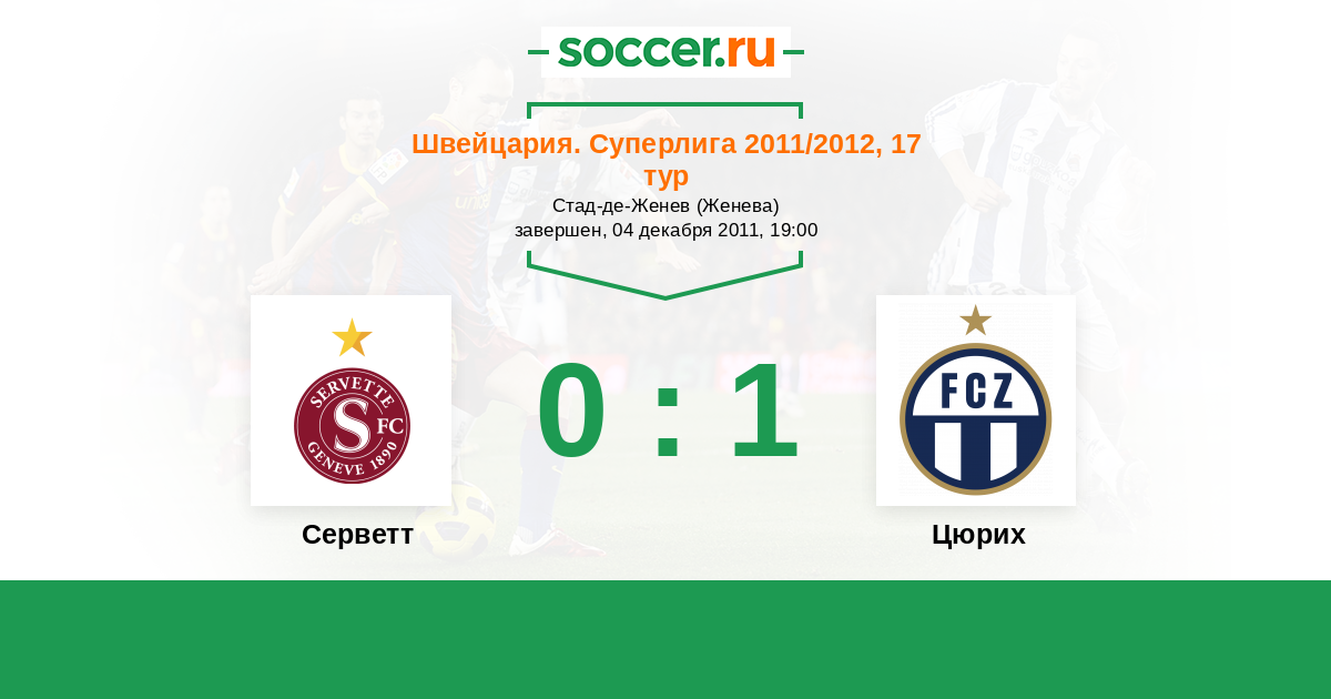 Швейцария. Суперлига 18.03.2012 Серветт Логотип футбольный клуб Серветт (Женева) 1:1 Логотип футбольный клуб Цюрих Цюрих