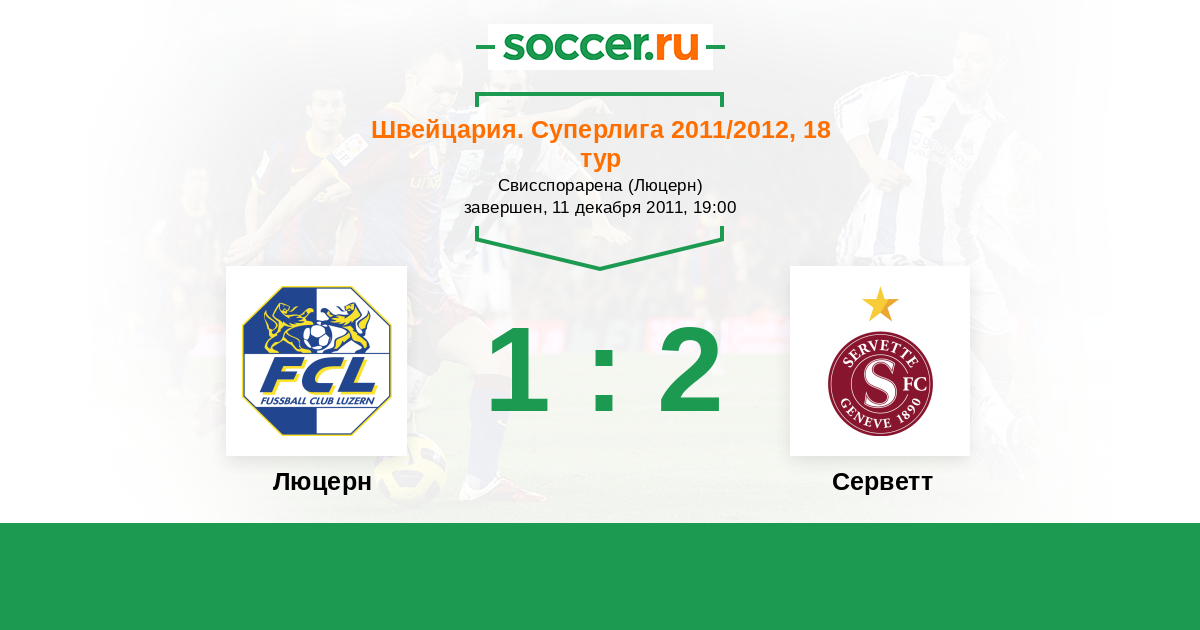 Швейцария. Суперлига 11.03.2012 Серветт Логотип футбольный клуб Серветт (Женева) 2:1 Логотип футбольный клуб Люцерн Люцерн