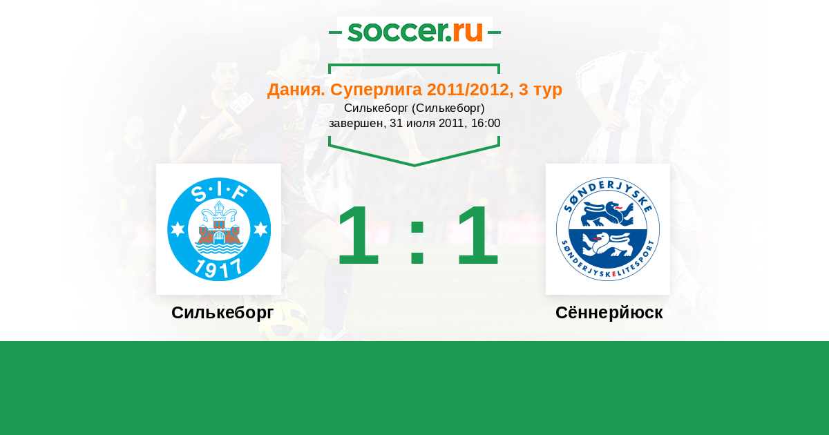 Дания. Суперлига 18.03.2012 Сённерйюск Логотип футбольный клуб Сённерйюск (Хадерслев) 2:4 Логотип футбольный клуб Силькеборг Силькеборг