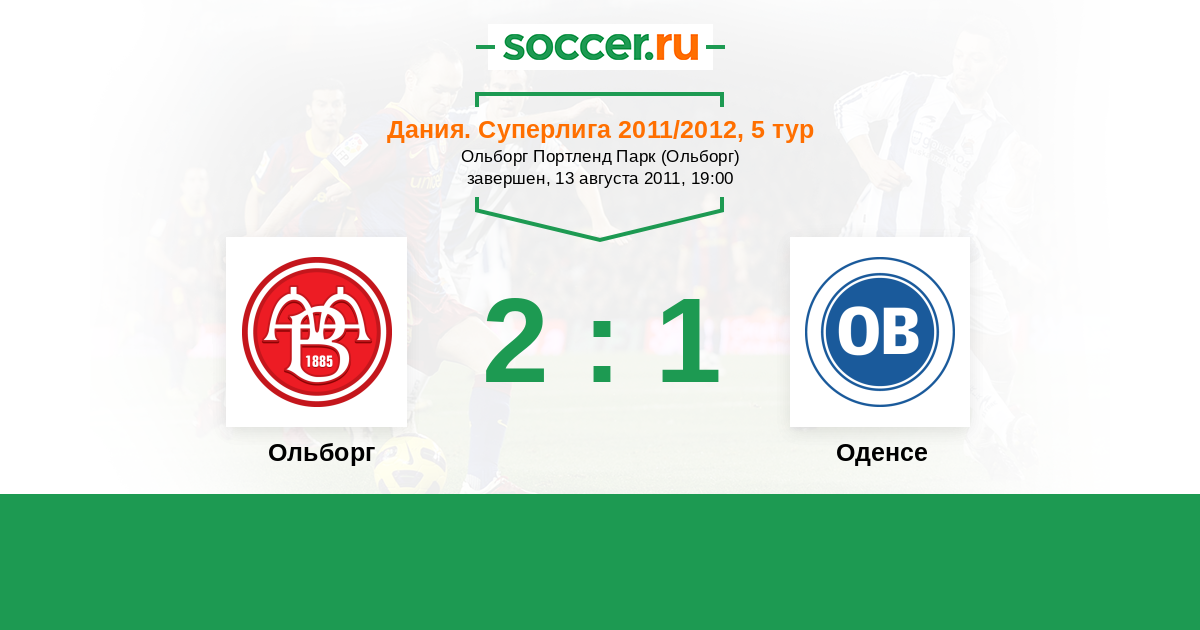 Дания. Суперлига 23.10.2011 Ольборг Логотип футбольный клуб Ольборг 2:1 Логотип футбольный клуб Оденсе Оденсе