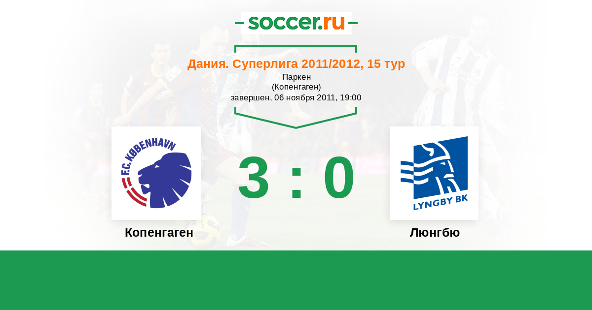 Дания. Суперлига 10.09.2011 Люнгбю Логотип футбольный клуб Люнгбю (Конгес Люнгбю) 0:1 Логотип футбольный клуб Копенгаген Копенгаген