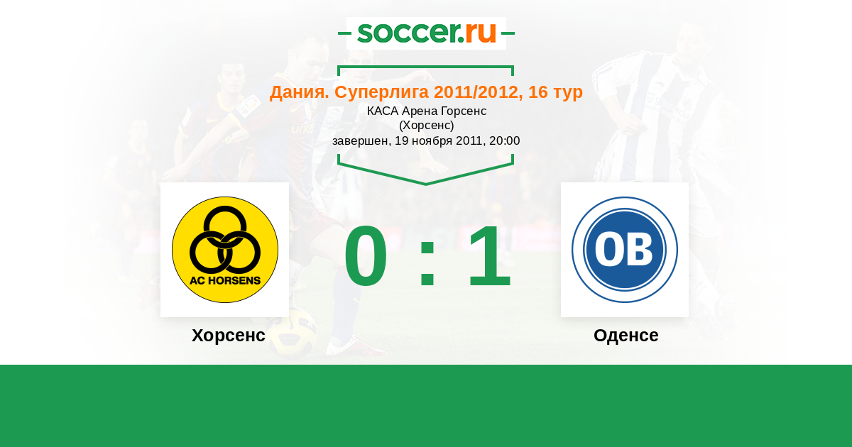 Дания. Суперлига 19.09.2011 Хорсенс Логотип футбольный клуб Хорсенс 4:3 Логотип футбольный клуб Оденсе Оденсе
