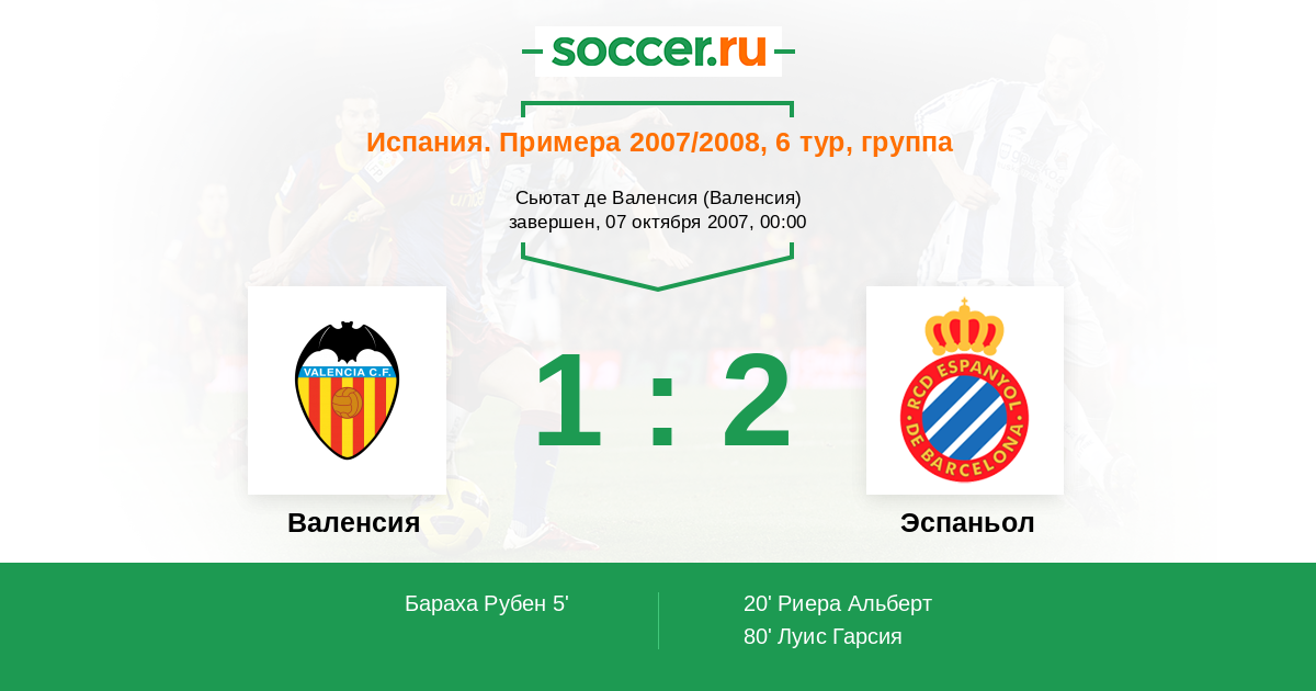 Протокол матча Валенсия против Эспаньол
