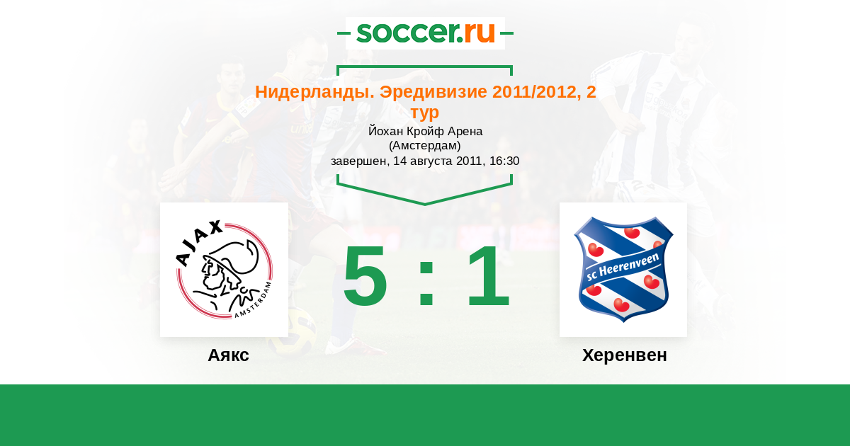 Нидерланды. Эредивизи 16.02.2014 Аякс Логотип футбольный клуб Аякс (Амстердам) 3:0 Логотип футбольный клуб Херенвен Херенвен