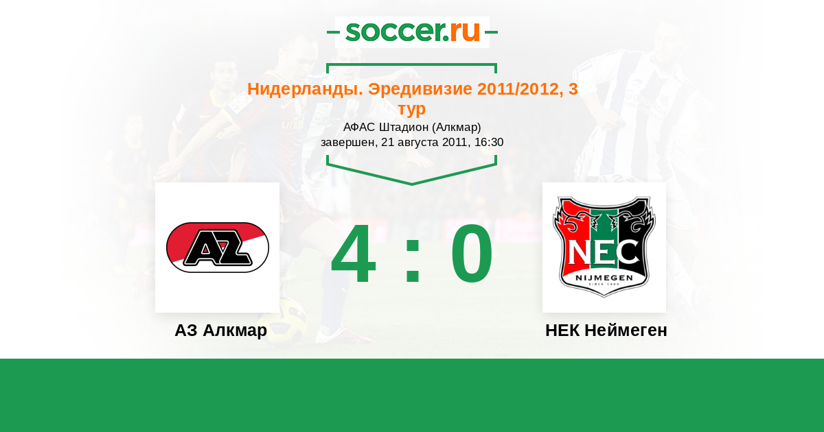 Нидерланды. Эредивизи 02.05.2012 НЕК Неймеген Логотип футбольный клуб НЕК Неймеген 1:1 Логотип футбольный клуб АЗ Алкмар АЗ Алкмар