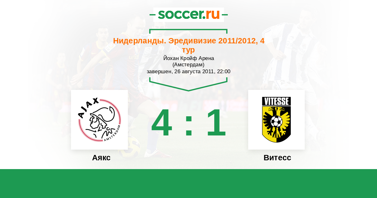 Нидерланды. Эредивизи 12.12.2010 Витесс Логотип футбольный клуб Витесс (Арнем) 0:1 Логотип футбольный клуб Аякс (Амстердам) Аякс