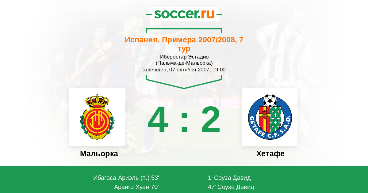 Протокол матча Мальорка против Хетафе