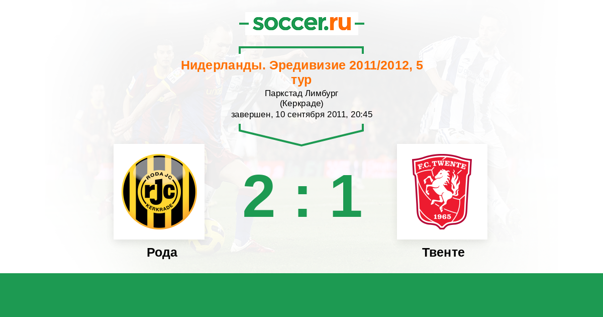 Нидерланды. Эредивизи 20.10.2012 Рода Логотип футбольный клуб Рода (Керкраде) 1:1 Логотип футбольный клуб Твенте (Энсхеде) Твенте