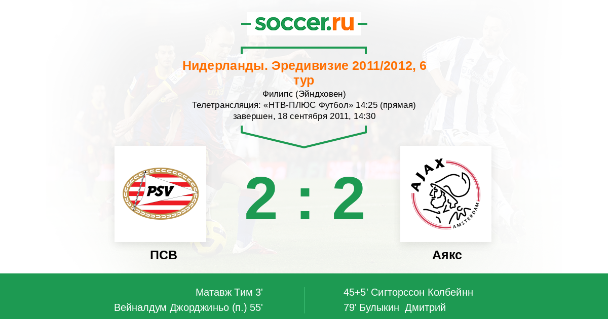 Протокол матча ПСВ против Аякс