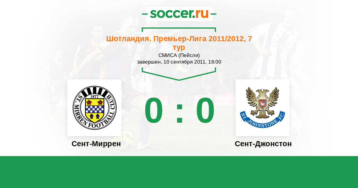 Шотландия. Премьер-Лига 29.10.2011 Сент-Джонстон Логотип футбольный клуб Сент-Джонстон (Перт) 0:1 Логотип футбольный клуб Сент-Миррен (Пейсли) Сент-Миррен